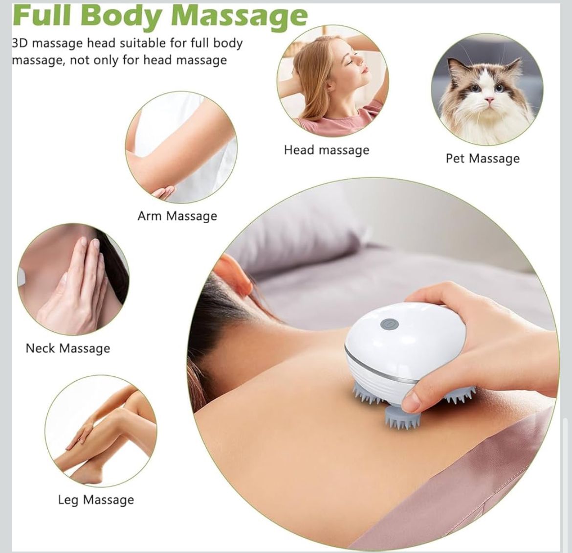 • Soft silicone massage heads